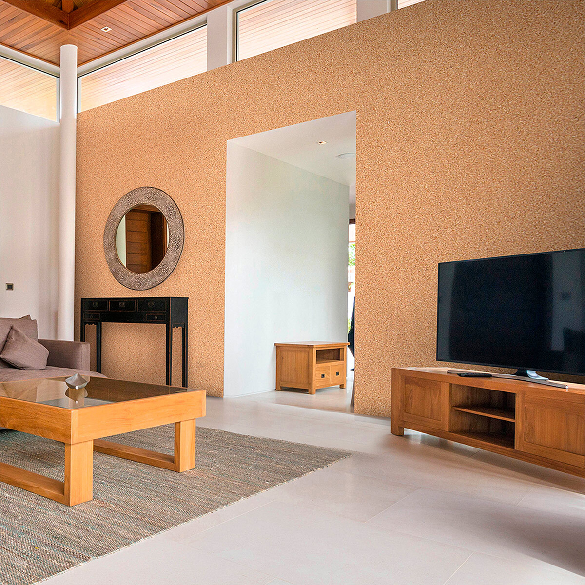 En populär idé för dem som vill kombinera korkens isolerande, dekorativa och funktionella fördelar är att köpa en rulle kork och limma fast det valda 3 mm korkväggmönstret på den.