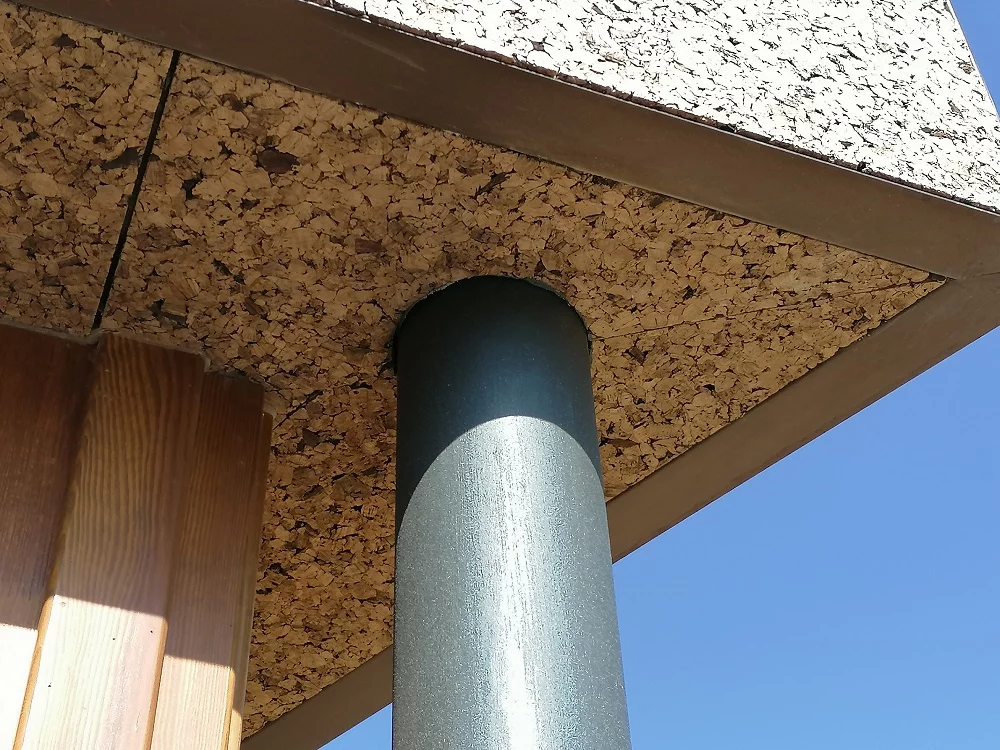 Arkitekten Elisabetta Quarta Colosso från den spanska studion El Fil Verd ritade ett enfamiljshus klätt med naturkorkpaneler i utkanten av Barcelonas Garraf Park. Korken sparar inte bara energi och ger isolering, utan gör också att byggnaden smälter in sömlöst i sin naturliga omgivning. Huset byggdes för ett pensionärt par som drömde om att bo omgivet av naturen i ett energieffektivt hem.